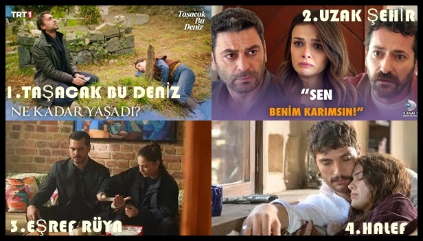 1.TAŞACAK BU DENİZ (TRT1) : Trt1’nin Taşacak Bu Deniz adlı dizisi 9.bölümünde Total grubunda aldığı 15,88 puanla haftanın dizilerinde 1.sıraya yükseldi.